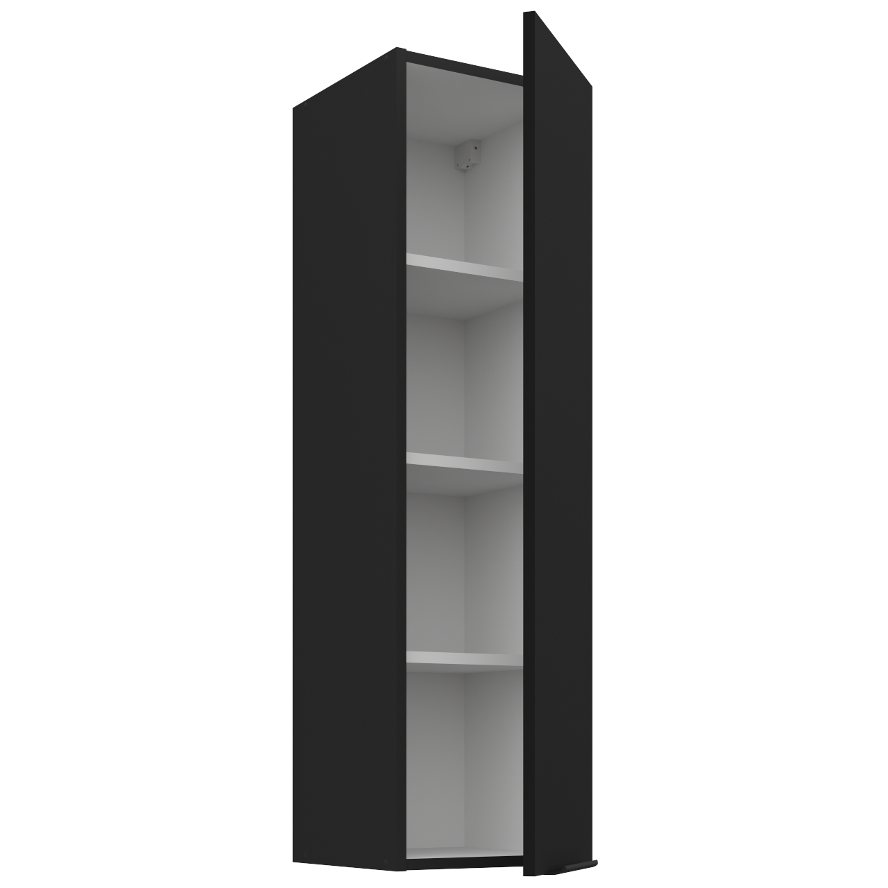 Vnútorná časť skrinky v bielej farbe. Skrinka obsahuje tri police. |